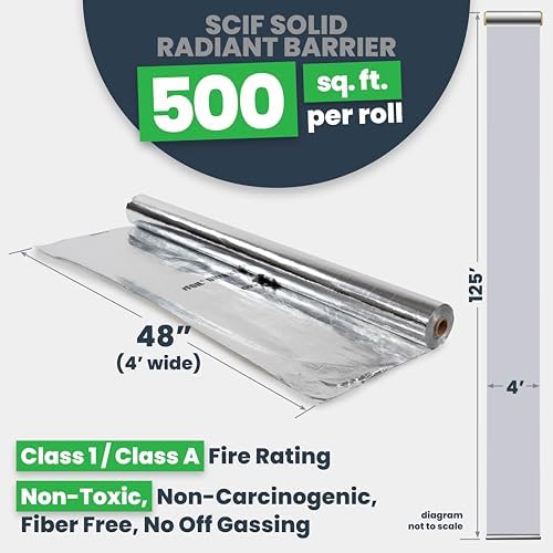 EcoFoil Ultra NT Solid SCIF Radiant Barrier 4' x 125' (500 Square Feet), Non-Perforated SCIF Radiant Barrier Foil for RF Shielding Material to Prevent Electronic Surveillance, EMI, & Other