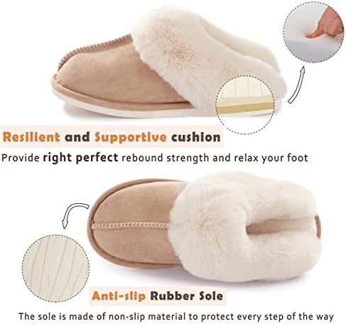 Donpapa Womens Slipper with Memory Foam Fluffy Soft Warm Slip On House Slippers Anti-Skid Cozy Plush for Indoor Outdoor