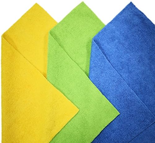 POLYTE Microfiber Cleaning Cloth Ultrasonic Cut Edgeless, 14 x 14 in (36 Pack, Blue,Green,Yellow)