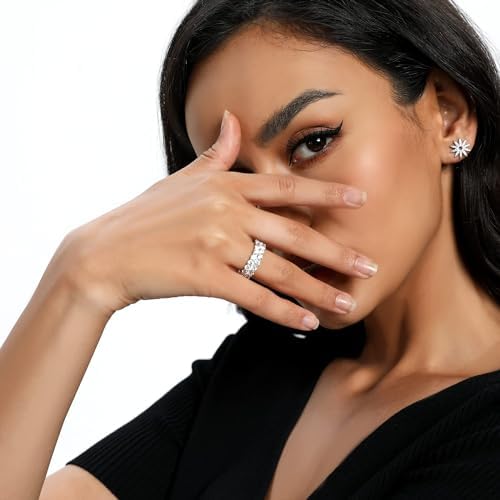 18K White Gold Plated Round-Cut Cubic Zirconia All-Around Band Ring Cocktail Jewelry for Women and Men