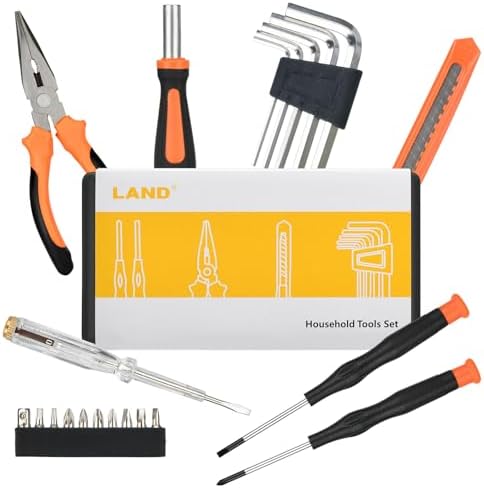 LAND 22-Piece Small Tool Kit with Toolbox - Essential Household Tool Set for Home Repair, DIY Projects, Garage & College Dorm, Includes Pliers, Screwdrivers & Portable Storage Case