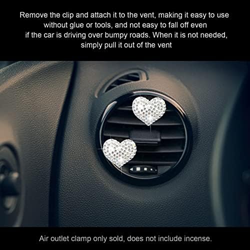 RBOKO 2pcs Car Vent Clip, Bling Crystal Heart Charms, Universal Car Air Conditioning Decor, White