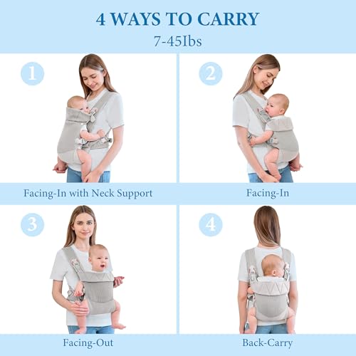 Huifen Breathable Mesh Baby Carrier, Ergonomic Design Baby Wraps Carrier with Head Support and Adjustable Sling for Newborns to Toddlers, Infant Carrier Baby Gift,for Babies 7 to 45 lbs (Gray)