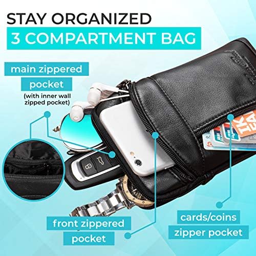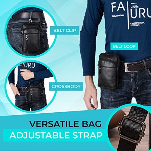Hengwin Small Leather Crossbody Shoulder Bag Men Belt Clip Phone Holster Case Belt Loop Pouch Waist Bag Pack Fit for iPhone 16 15 14 13 Pro Max 8 Plus Galaxy Note 9 8 S24\/S23 Ultra S9\/S8 Plus (Black