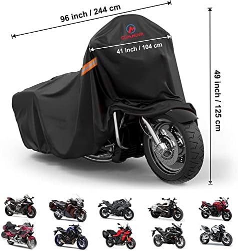 Motorcycle Cover All Season, Universal Waterproof Weather Sun Outdoor Protection Motorbike Cover, Scooter Shelter, Heavy-Duty Motorcycles Vehicle Cover, Fits Up to 96" Motors