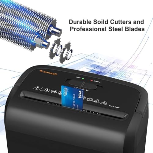 Bonsaii 6-Sheet Micro-Cut Shredder, P-4 High Security, Shreds Credit Cards\/Staples\/Clips, 3.4 Gal Transparent Window Bin, Black