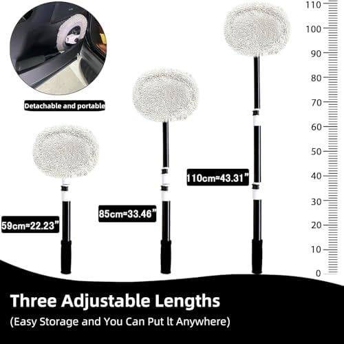 15° Curved Car Wash Brush with Long Handle 43" Microfiber Cleaning Mop Telescopic Extension Pole for Caravan RV Truck Auto SUV Wheel Boat Exterior 2 in 1 Carwash Duster Not Hurt Paint Scratch Free