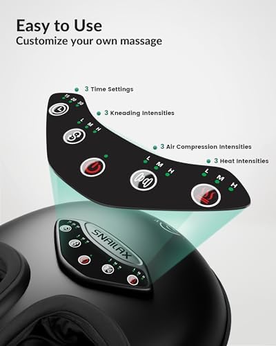Snailax Foot Massager with Heat, Shiatsu Feet Massager Machine for Plantar Fasciitis Neuropathy, Rolling Compression Foot Massage, Fits Size up to 14\u201C Multiple Modes, Gifts for Parents