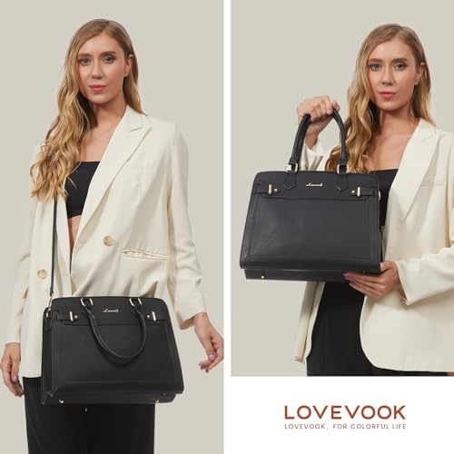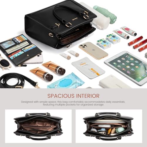 LOVEVOOK Purses and Handbags for Women, Tote Shoulder Bag Satchel Black Purse and PU Leather Top Handle for ladies