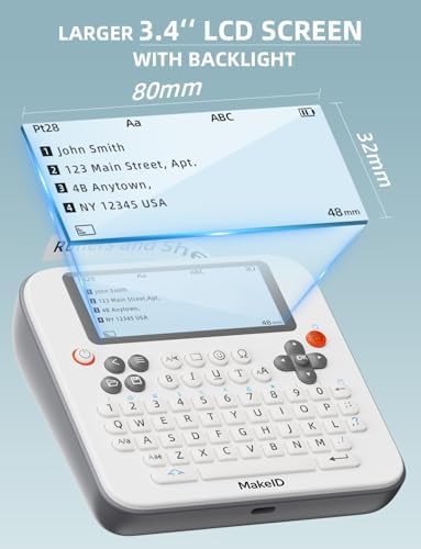 Makeid E1 Label Maker - Bluetooth Rechargeable Label Maker Machine - QWERTY Keyboard Labeler, 3.4" Backlighting LCD Screen - Prints 9~16mm Label - Home and Office Organization
