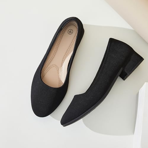 ALTOCIS Women\u2019s Low Block Chunky Heels Pumps Ladies Elegant Closed Round Toe Pumps Shoes Low Platform Office Pumps Shoes