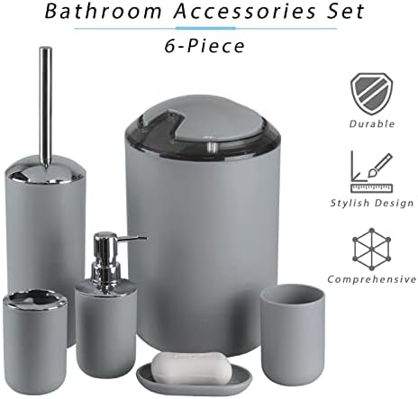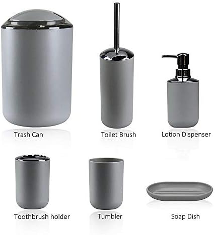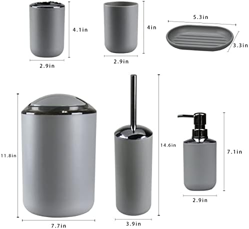 IMAVO Bathroom Accessories Set,Grey Bathroom Set,7 Pieces Bathroom Accessory Set,Tray,Toilet Brush,Trash Can for Bathroom Décor and Housewarming Gifts