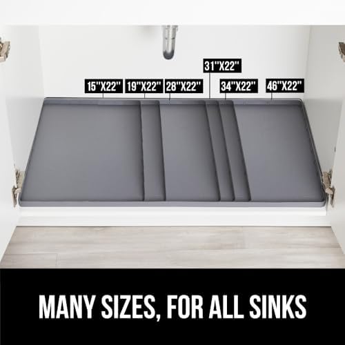 GORILLA GRIP Waterproof Silicone Under Sink Mat with Raised Lip for Kitchen and Bathroom, 34 x 22 in, Cabinet Shelf Liner Stay in Place Mats Dishwasher Safe Drawer Liner, Organizer Tray, Gray