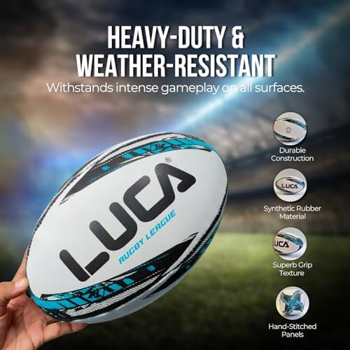 LUCA League Training Rugby Ball Hand Stitched Durable Water Resistant Super Grip