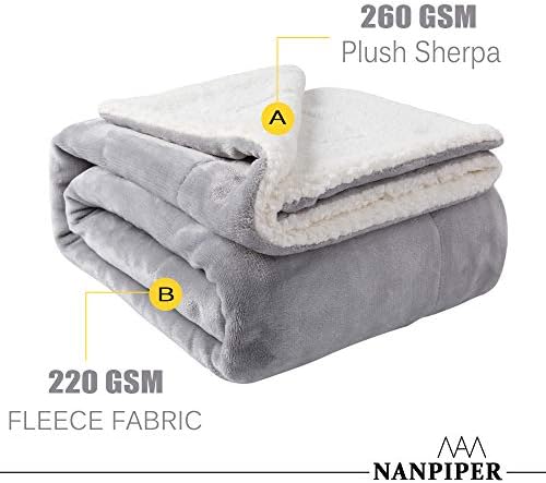 NANPIPER Sherpa Blanket Warm Blankets for Winter Super Soft Fuzzy Flannel Fleece\/Wool Like Reversible Velvet Plush Couch Blanket Lightweight(Light Grey Throw Size 50"x60")