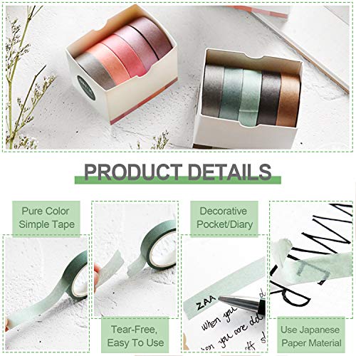 Package Contents: You will get 2 boxes of solid color washi tape (1 box of green tone and 1 box of pink tone) and washi tape cutter. The tape set is more convenient to organize and cut the tape. Convenient Combination: The combination of masking paper tapes and tapes holder will make your use more convenient and faster, and the tape dispenser can also make the tape cut more perfect while no harm to fingers, which greatly improves your using experience. Excellent Sticky and Removable: These masking tapes are made of durable paper, soft adhesive, and they can stick firmly to most clean surfaces and can be easily removed without any sticky residue. Besides, these decorative tapes material can be written with pen or marker. Easy to Carry: Both of the masking tapes and roll tape cutter holder storage are so small and light that suitable for offices and rooms. Paper tape dispensers can hold 5 rolls of 15mm width tape. Wide Application: The washi tapes set can be used to label, divide, decorate or stick everything you want in classroom, office, laboratory and at home. These scrapbooking tapes are also good for kids, teachers, students and painters, etc.