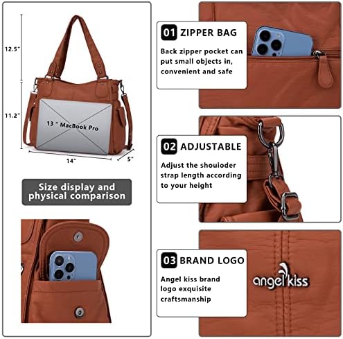 Angel Kiss Handbags for Womens Top-Handle Hobo Purse Roomy Casual Shoulder Bags PU Tote Satchel Purse for Women