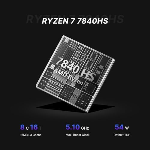 BOSGAME M4 Neo Mini PC Desktop Computers, AMD Ryzen 7 7840HS, 32GB DDR5 1TB PCle SSD, 4K Triple Display, USB4.0, Oculink, Dual 2.5G LAN, Wi-Fi 6E\/BT5.2, Compact Silent PC for Gaming, Office & Des