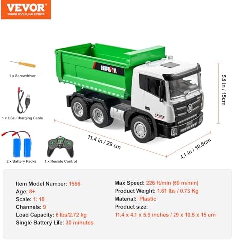 VEVOR RC Dump Truck Toy for Kids, 226 ft\/min Fast Speed, 9-Channel 1:18 Scale, Remote Control Dump Construction Vehicle with Lights & 2 Batteries Birthday Xmas Gifts Ideas for Boys Age 8 9 10 &am