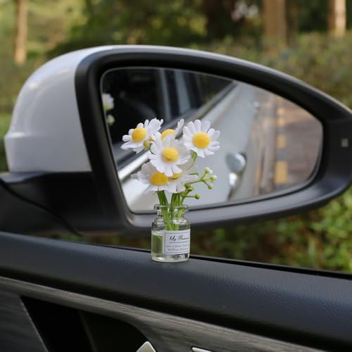Kiofs Daisy Flower Car Accessories for Women Interior Aesthetic, 3 Pcs Daisy Cute Car Dashboard Decorations