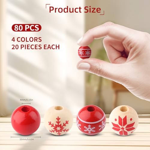 80 PCS Wooden Beads for Craft, 16mm Christmas Wood Beads Natural Wood Beads for Xmas Valentine's Day Saint Patrick's Day Party Decoration Home Decor DIY Craft Supplies(Style 1)