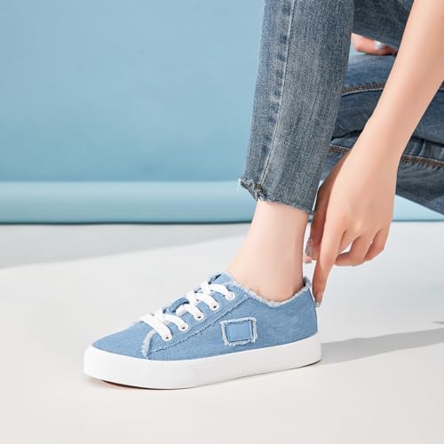 BENPAO Women's White Canvas Shoes Black Canvas Fashion Sneakers for Women Comfortable Casual Tennis Shoes Low Top Walking Shoes