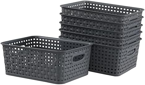 CadineUS 6-Pack Plastic Woven Storage Baskets, Small Baskets Dark grey