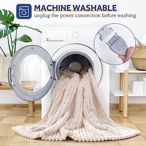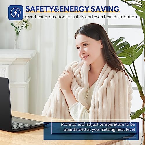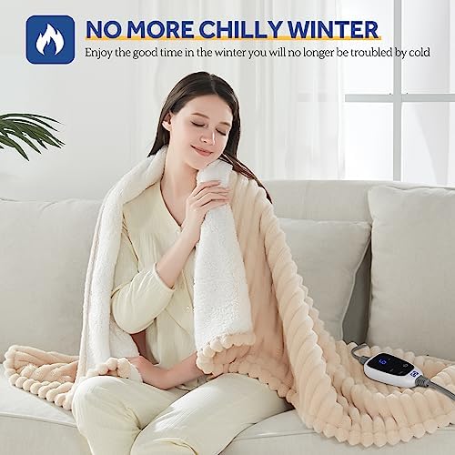 Sealy Electric Blanket Heated Throw, Soft Cozy Ribbed Flannel to Sherpa Reversible Safe Heating with 6 Heat Settings & 2-10 Hours Auto-Off Over-Heat Protection, Machine Washable, 50"x60" B