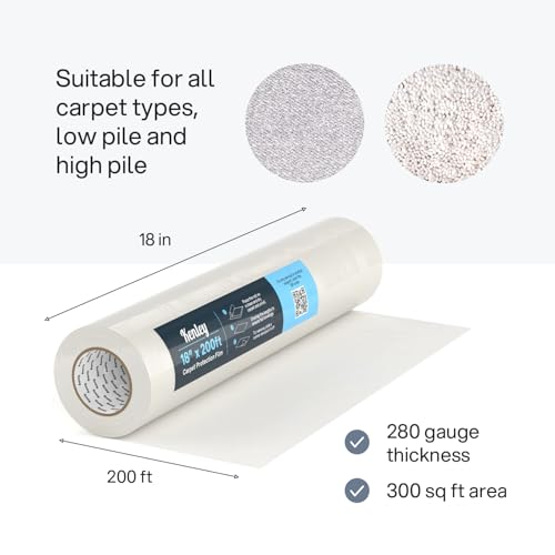 Kenley Carpet Protection Film - Self Adhesive Plastic Carpet Protector Film - Heavy Duty Shield Covering for Stairs Floor Runner Surface - Puncture & Water Resistant Sticky Protection Roll (18&#34