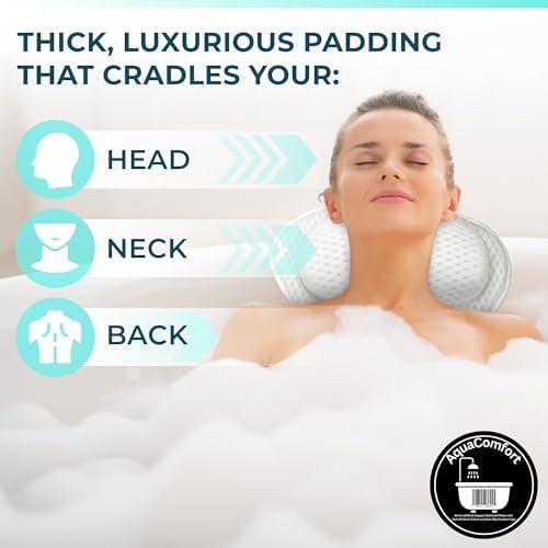 Bathtub Pillow, Luxury Bath Pillows for tub Neck, Back and Shoulder Support, Thick Padded, Ergonomic Bath Tub Pillow with 4D Air Mesh Cushions, Strong Suction Cups, Relaxing Bath Accessories Spa Gifts