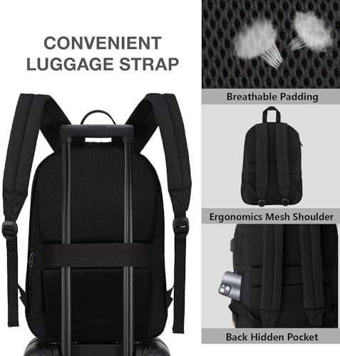 KEOFID Travel backpack for Men and Women, Anti Theft Laptop Backpack with USB Charging Port for Work, Large Bag for College, BLACK BOOK BAG FOR BOYS, GILRS Backpack,Water Resistent(Black)