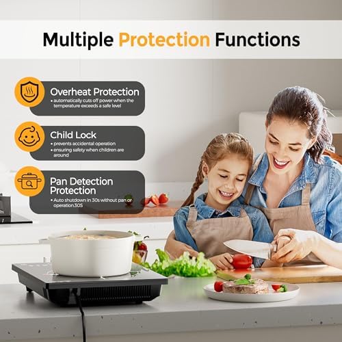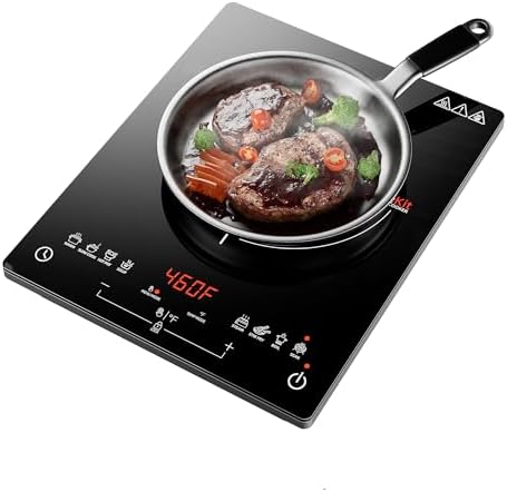 RoneKit Induction Cooktop 1800W Portable Electric Stove Countertop, 8 Preset Functions & Temp Settings, 2 Cooking Modes, Timer, Child Lock for Tiny Kitchen, Apartment, Camping, RV Countertop Burne