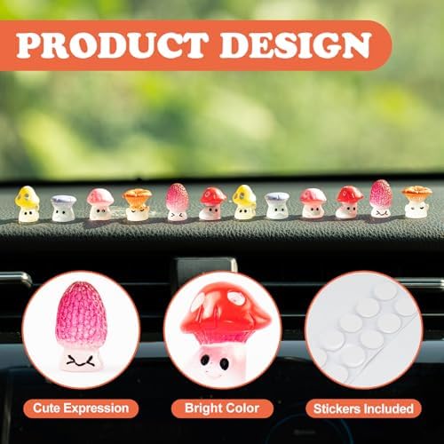 Rislobx 12PCS Luminous Mushroom Car Dashboard Decorations, Cute Mushroom Decor for Women Rear View Mirror Ornament Cute Car Decor Interior Dashboard Accessories for Home Office