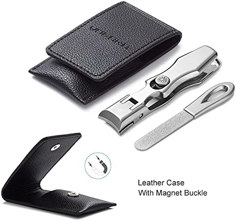 VOGARB Nail Clippers for Men Thick Nails, Large Wide Jaw Opening Long Handle Heavy Duty Ultra Sharp Toe Nail Clippers with Catcher for Seniors,Adult,Women (Silver with File)