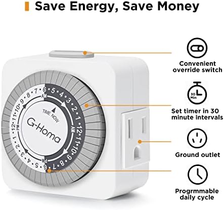 G-Homa Timers for Electrical Outlets, 24 Hour Indoor Plug-in Mechanical Timer Mini, 30 Minute Intervals, 3-Prong, Daily On\/Off Cycle, for Lights, Lamps (4-Pack, ETL Listed)