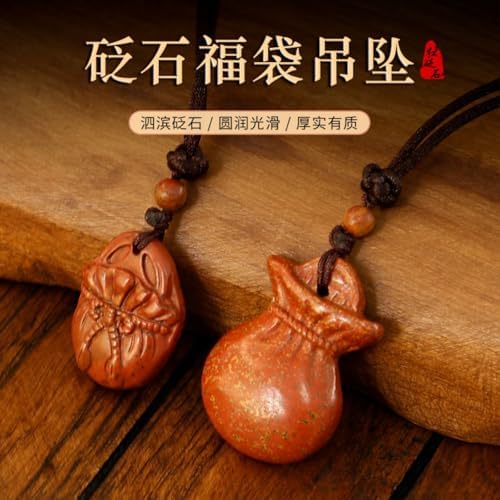 KBBYT 天然正宗泗滨红砭石福袋吊坠 富贵红手工编织项坠 泗水砭石吊坠 Home,Office Body Electric Massagers