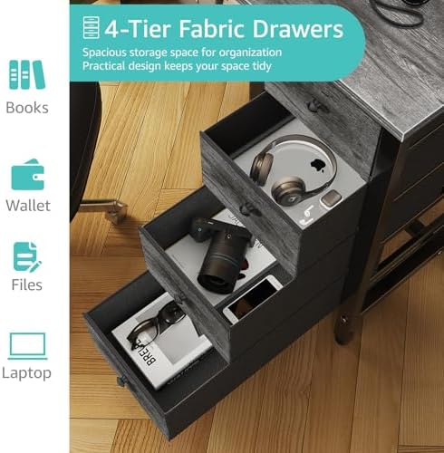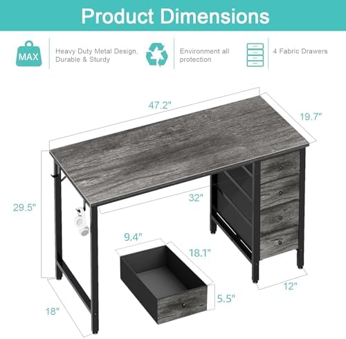 Lufeiya 47 inch Computer Desk with 4 Fabric Drawers, Writing Work Study Desk for Home Office Bedroom, Modern Simple Student PC Desks, Gray